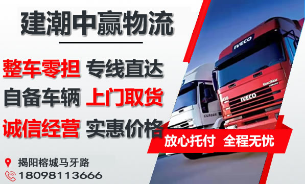 揭阳到镇江物流专线是建潮中赢物流推出的从揭阳到镇江的物流专线直达运输,提供揭阳到镇江货运公司电话查询价格和费用,快速安全将货物送达,做用户放心的货运物流服务商。